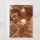 Vintage Ephemaschine mit einem Foto für Liebe und Romantik mit einem jungen Paar mit Tennisschlägern. Ein romantisches Foto mit flirtenden Neuvermählten, das kurz davor ist, ein Spiel zu spielen.