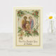 Schönes Vintages traditionelles Bild der heiligen Familie, des Jesuss, der Marys und des St Joseph mit Weihnachtsblumendekor.