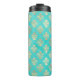 Vintages Türkis- und Goldpfauenmotiv Damask Thermosbecher
