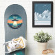 Dieser personalisierte Aufkleber mit Schnitt bietet eine Vintage Szene eines UFO, das durch einen faszinierenden Sonnenuntergang strömt. Die Sterne blinken im dunklen oberen Himmel, während der feurige orangefarbene Horizont eine dramatische Silhouette auf die Landschaft unten wirft. Das UFO selbst fungiert als Leuchtturm und beleuchtet das Land mit seinem hellen Licht.