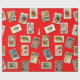 Vintage Urlaubskarten, Weihnachtskarten und Postkarten auf einem fröhlichen roten Hintergrund. Ein einzigartiges Geschenk für Ihre ganz besonderen Feiertage oder Weihnachtsgeschenke. Von Scarebaby Design.