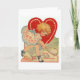 Vintage Valentineillustration eines kleinen Mädchens und des Tennisschlägers auf einer Grußkarte.