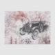 Eine hübsche Vintage Abbildung eines alten Autos in Schwarz/Weiß mit schwachem handgeschriebenem Text im Hintergrund. Ideal für Entkoppeln.