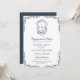 Vintages Wappen-Engagement für Navy Blue Monogram Einladung
