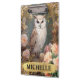 Vintages weißes Owl und rosa Rosen Klemmbrett
