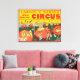 Vintages Karson & Barnes Wildtier Zirkusposter mit Innenansicht von Künstlern in drei Ringen.