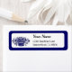 Ein benutzerdefiniertes Rücksendelabel mit Vintager Holzschnitt-Kunst aus einem Korb aus Gänsen und anderen Blume auf weißem Hintergrund und blauer Grenze.