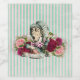 Vintage Alice's Adventure in Wonderland The Mad Hatter mit Blumen und Schnörkeln, Set auf antikem Look pink und aqua gestreiftem Hintergrund