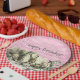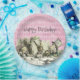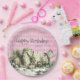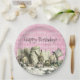 Whimsical Vintage Blick Geburtstagsfeier Teller für ein Tee-Party im Stil der Alice im Wunderland, mit Original-Buch Tee-Party Illustration von Alice, der Mad Hatter und White Rabbit auf einem bedrückten rosa Vintagen Harlequin Hintergrund. In der Erholung der Sammlung finden Sie die passenden Party-Vorräte und Einladungen