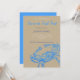 Eleganter Strandstyle Einladung für ein Summer Crab Fest. Es zeigt eine Vintage Abbildung einer blauen Krabbe mit den Details Ihres Party in verschiedenen Blau- und Grautönen . Die Überschrift kommt in kalligraphischen Schriftart . Coastal Style Card mit khaki (#C3B091) vorne blau rückwärts. Design von Alma Wad .