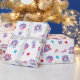 Niedliches Vintages Zirkusmuster für eine Babydusche oder Kindergeburtstag. Lila, blau, rot, gelb sind die Farben auf weißem Hintergrund. Zelte, Anhänger, Ballons, Drachen, Schneekoppen, Baumwollbonbons und Hüte im Muster.