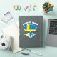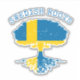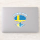 Stilvolle Vinyl-Aufkleber für Ihre Elektronik, Autofenster, Sportgeräte und mehr, mit einem Baum mit Wurzeln Silhouette mit der Flagge von Schweden füllen und "Schwedische Roots" gekrümmten oberen Text auf hellgrauem Hintergrund.