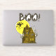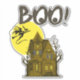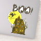 Alles Gute. Spuk Haus mit einer Hexe, die an einem Vollmond vorbeifliegt.