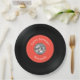 Vintage Vinyl Platten Design Paper Teller mit gestreiftem Hintergrund, herausnehmbaren (wenn gewünscht) musikalischen Noten und anpassbarem Text.