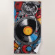 A vibrant illustration of a vinyl record spinning on a classic turntable. Bold colors, mechanical details and graffiti-style splashes create a dynamic music scene inspired by DJ culture, analog sound and the timeless feel of vinyl records.