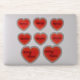 Rote, dreidimensionale Herzen mit Namen. Drei kleine Herzen mit dem ersten Namen, drei kleine mit dem zweiten Namen. Zwei große Herzen verbinden die beiden Namen mit "&"