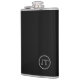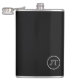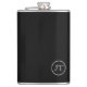 Der in Vinyl umhüllte Kolben wird in einer soliden Farbe schwarz mit Muster-Monogramm-Initialen gezeigt. Passen Sie diese Flasche an und ändern Sie das Beispiel in Ihr eigenes.