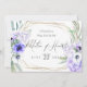 EINLADUNG DES Brautparty | Aquarellgoldfarbene geometrische Terrarienformen mit Eukalyptus-Blätter, Lila- und Violettanemonen und Hydrangea-Blume, ein goldgeometrisches, facettenreiches Terrarium mit Blumenstrauß. Dies ist Teil einer kompletten Hochzeitsgeschosse Suite mit passender Hochzeit, Babydusche und anderen Veranstaltungsportalen.