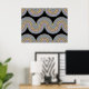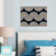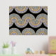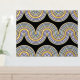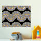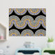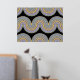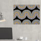 Schöne zeitgenössische violette, lavender, helle lila, blaue und reale goldfarbene geometrische abstrakte Wellenlinien Muster auf schwarzem Hintergrund. Elegantes, stilvolles und eklektisches minimalistisches Design für den künstlerischen angesagten Trendsetter, Vintage Retro-Kunststil oder abstrakten geometrischen Motivliebhaber. Entdecken Sie dieses Design mit den Farben der Innendekoration und dekorieren Sie Ihre Wand mit etwas Exklusivem und Einzigartiges an Ihrer Wand!