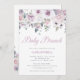 Diese wunderschönen Babybrunch-/Babydusche-Einladungen sind mit Aquarellblüten, sanften lila und weißen Blume mit vielen botanischen Blätter und eleganter lila Kalligraphie ausgestattet.