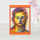 Eine Figur, die von einer Frau mit violetten Augen zeichne, blickt auf den Betrachter hinaus. Ausgerendert in farbigen Kreide.