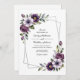 This elegant wedding invitation features a soft geometric frame surrounded by delicate watercolor florals in rich violet tones. A refined serif and script font combination adds a timeless touch, making it perfect for couples seeking a modern yet romantic aesthetic. Ideal for summer, fall, or garden-themed weddings, this invitation beautifully blends contemporary design with natural floral charm.