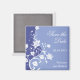 Ein wirklich schöner rett-the-date Magnet. Ein Stamm mit weißer Blume erreicht die Höhe dieses Magneten über einen reichen, blau-violetten Hintergrund. Blume greifen darauf zurück, um Ihre individuellen Informationen zu gestalten. Erhältlich in alternativen Farben mit passenden Produkten.