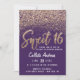Violet Gold Scattered Glitzer Ombre Sweet 16 Einladung