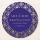 Violet Lila Goldmuster Hochzeit Sichern Sie den Date Round Paper Untersetzer Ein modernes Save the Date in einem einzigartigen Untersetzer-Format, entworfen auf einem klassischen, violetten lila Hintergrund und mit einem modernen Goldmuster. "Save the Date..." erscheint oben auf Ihrem Untersetzer in Goldblock und Schriftzeichen, mit Ihrem Hochzeitstag und Hochzeitsort darunter. Benutzen Sie die zusätzliche Textzeile, um Ihre Hochzeitswebsite oder weitere Details zu teilen. Ändern Sie die Hintergrundfarbe und den Schriftart nach Ihren Wünschen.