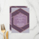 Moderne, elegante und schicke violette, lila und dunkle lila Imitate bedruckten Rose Gold Hexagon, Hochzeitsempfang Menükarten. Dieses klassische und raffinierte Design eignet sich perfekt für den eleganten, stilvollen und trendigen Hochzeitsempfang. Personalisieren Sie Ihre Speisen auf der Vorderseite mit Ihren Namen und Daten. Dann passen Sie die Rückseite mit Ihrem Monogramm Initial an. Das gesamte Foto-Druckdesign.