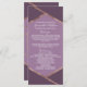Moderne, elegante und schicke violette, lila und dunkle lila Imitate druckten Rose Gold Hexagon, Hochzeitsprogrammkarten. Dieses klassische und raffinierte Design ist perfekt für das trendige und stilvolle Ehepaar. Personalisieren Sie Ihre eigene Nachricht auf der Vorderseite sowie ein individuelles Monogramm auf der Rückseite. Das gesamte Foto-Druckdesign.