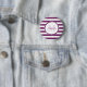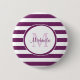 Eine schicke violette und weiße Rugby Streifen Pinback-Taste. Personalisieren Sie dieses Kleidungsmuster, indem Sie Ihren Namen und mit Monogramm Initial. Dieses moderne Monogramm-Design ist Teil der Magenta Lila Stripes Personal Essentials Summer Color Collection.