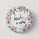 Identifizieren Sie die Hauptakteure in Ihrem Brautparty mit unseren eleganten, süß-schicken Blumenknöpfen. Button zeigt rosa und violett lila Aquarellfarben-Blume und grüne Blätter, wobei in Kalligraphie-Skripten "Bridesmaid" eingetragen ist.
