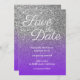 Violet Silver Ombre Glitzer Save the Date Einladung