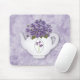 Dieses Violet Teekessel Mousepad verfügt über eine Schicht von Maus gezeichnet Kunst für den Hintergrund und eine Maus gezeichnet Teekanne mit Veilchen.