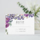 Elegante Violett und Pflaumenblumen Hochzeitskarte mit den Farbtönen von Salbei grün, die schnell und einfach auf Ihre Veranstaltungsspezifikationen angepasst werden.