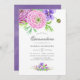 Botanische Aquarellfarben-Quinceanera mit trendigen Akzenten aus Ultraviolett und Pflaume. Zu den Blume zählen Ranunculus, Tulpen, Veilchen und Crocuses mit starkem impressionistischem chinesischen Einfluss.