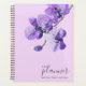 Ein eleganter Planer mit einem Zweig violetter orchitischer Blume auf einem lila Hintergrund. "Planner" (der editierbar ist) ist in modernem kalligraphischen Schriftart. Personalisieren Sie mit Ihrem Namen und Jahr.