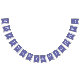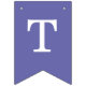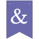 Ein einfaches Banner für eine violette (lila) Hochzeit, mit den Namen der Braut und des Bräutigams, mit weißen Kappen auf violettem Hintergrund.