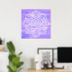 Ein buntes Poster mit einem floralen weißen Mandala auf einem violetten Aquarell-Hintergrund. Violettbürsten verbessern dieses schöne weiße Mandala, um Reinheit und Spiritualität inspirieren. Violet fördert die Harmonie des Geistes und der Emotionen, trägt zu geistiger Ausgewogenheit und Stabilität, Seelenfrieden, einer Verbindung zwischen spiritueller und physischer Welten, zwischen Denken und Aktivität bei. Original Handgemalt von SunFreeStar.