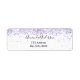 Ein weißer Hintergrund. Mit violettem, lavendelfarbenem Konfetti dekoriert. Personalisieren Sie Ihren Namen und Ihre Adresse und fügen Sie diese hinzu. Ideal für ein Brautparty, eine Babydusche oder eine Geburtstagsfeier.