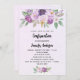 Ein violetter, lavendigerer, wasserfarbener Hintergrund. Die Einrichtung ist mit violetten und lila Blume und Grünpflanzen sowie einem goldenen Kreuz gestaltet. Personalisieren Sie Ihren Namen und Ihre Empfang-Daten und fügen Sie diese hinzu.