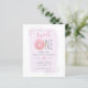 Violett | Budget Donut Sprinkle Sweet 1. Geburtstag Einladungen. Der erste Geburtstag ist definitiv ein ganz besonderes, also feiern Sie Ihren 1. Geburtstag Ihres kleinen Mädchens mit unseren einzigartigen und lustigen Einladungen! Mit einer rosa Donuts mit farbenprächtigem Sprinkle oben mit der Aufschrift "Sweet ONE". Ihre Party-Details werden in niedlicher und trendiger Typografie gegen ein pastellfarbenes lila Aquarellüberlagern dargestellt. Umkehrend zu einem hellrosa Hintergrund mit Sprinklen.
