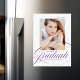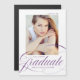 Eleganter Abschluss-Magnet mit dem Senior Foto des Absolventen und "Graduate" in einem lila modernen kalligraphischen Schriftart. Personalisieren Sie den Ankündigungsmagnet für den Foto-Abschluss, indem Sie den Namen, den Schulnamen und das Abschluss-Jahr des Absolventen hinzufügen.