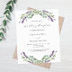 Weiß mit Lavendel-Blume und Eukalyptusgrün dekoriert. Personalisieren und Ihre Namen und Details. 1 Blatt = 1 Einladung mit Druckkante bis Kante.