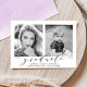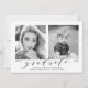 Unsere stilvollen "Now and Then" Abschluss Foto Ankündigungen zeigen das Lieblings-Foto Ihres Absolventen (jetzt) sowie ein Baby- oder Kleinkind-Foto (dann). Ändern Sie die Jahre unter jedem Foto, um das Jahr des Abschlusses und das Geburtsjahr (oder das Foto des Jahres) widerzuspiegeln. Die modernen Graduierungsankündigungen zeigen den "Graduierten" in einem eleganten Script-Schriftart mit dem Namen, dem Namen der Schule und dem Unterrichtsjahr unten. Auf der Rückseite der Graduierung befindet sich ein lila, weicher Aquarellhintergrund. Fügen Sie ein Foto oder Text auf der Rückseite für ein personalisierteres Design hinzu!
