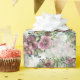 Elegantes, Viktorianisches Blumenpapier mit einer schönen Handgemälde, Aquarellfarbe, lila violettem Blumenkranz und einem blauen Vogel, der darin sitzt.