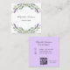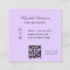 Weiß, mit Lavendel und Eukalyptusgrün dekoriert. Personalisieren und fügen Sie Ihren Namen und Text auf der Vorderseite. Zurück: Violetter Hintergrund. Vorlagen für Ihren Namen, Titel, Telefonnummer, E-Mail- und Website-Adresse, QR-Code für Ihre Website oder Ihr Social-Media-Konto. Ideal für Unternehmerinnen, Schönheitssalons, Geschäftsinhaber