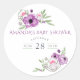 Violet Plum and Sage Green Wildblume Aquarell Babyaufkleber, die schnell und einfach auf Ihre Veranstaltungsspezifikationen zugeschnitten sind.