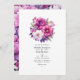 Violett und rosa Blumen Hochzeit Einladung. Der QR-Code auf der Rückseite führt zu Ihrer Hochzeitsstelle, wo die Menschen mehr und uAwg lernen können.